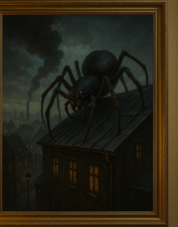 Ein Dach aus Eisen. Eine Nacht aus Nebel. Und darüber, lautlos, gewaltig, eine Spinne, die mehr weiß als wir.